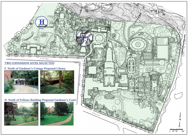 Two expansion sites were selected that preserved Dumbarton Oaks Gardens while adding new research library and gardener headquarters