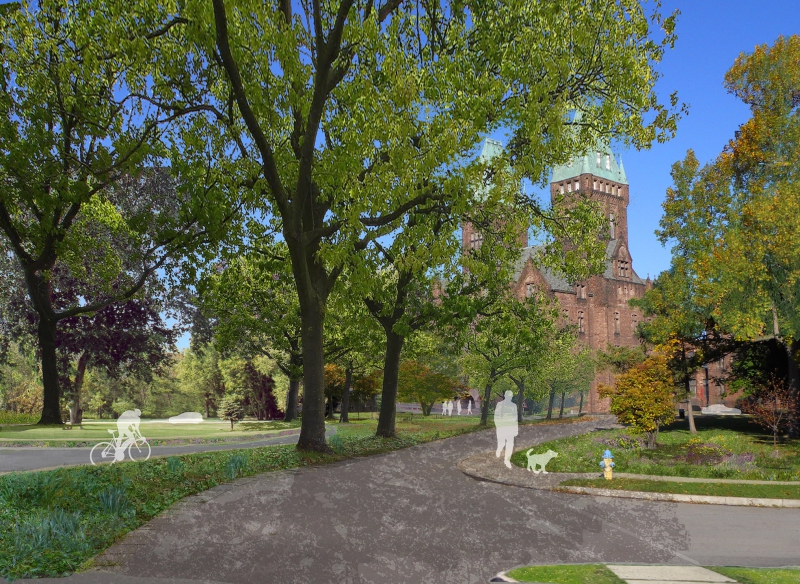 Heritage Landscapes South Lawn simulation proposed character achieved with removal of parking and enhanced circulation
