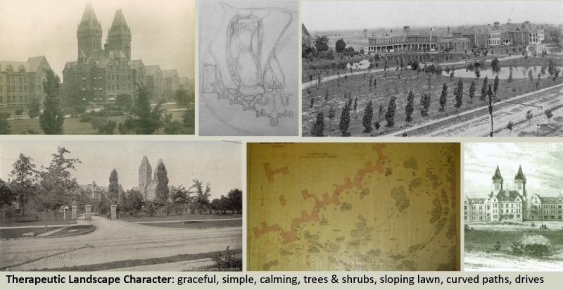 Historic images of the therapeutic landscape plans and views, courtesy Buffalo State Asylum and FLONHS archives