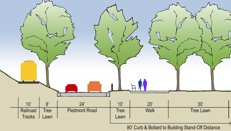 Heritage Landscapes developed a series of simple sectionsto portray the proposed approaches to edges, and axes