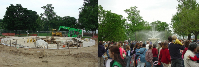 The Patterson Park Fountain reconstruction retained the marble central element, reopening with a neighborhood celebration, courtesy Baltimore Recreation and Parks, Capitol Projects