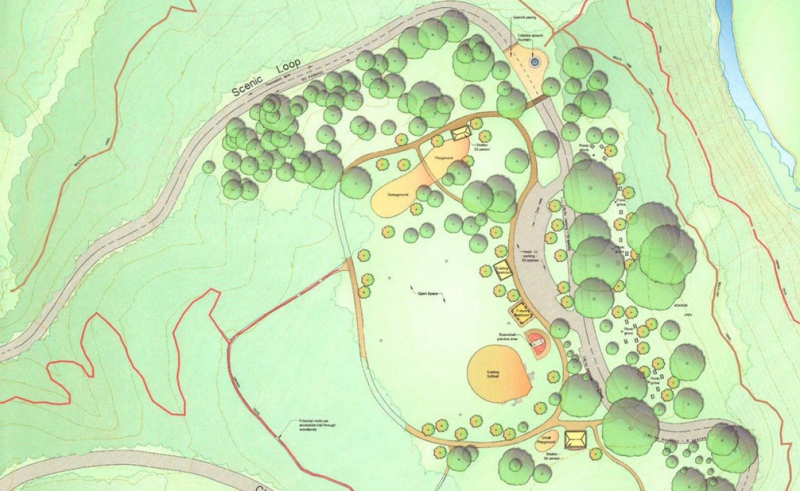 The Bonnycastle Hill Hogan Fountain Master Plan integrates very high use with renewal of park Olmsted character and scenery, courtesy Environs Inc
