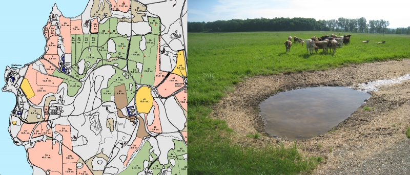 The Swiss Brown cow herd uses pasture lands, we developed trail side swales and settling basins to manage stormwater, limiting nutrient rich runoff