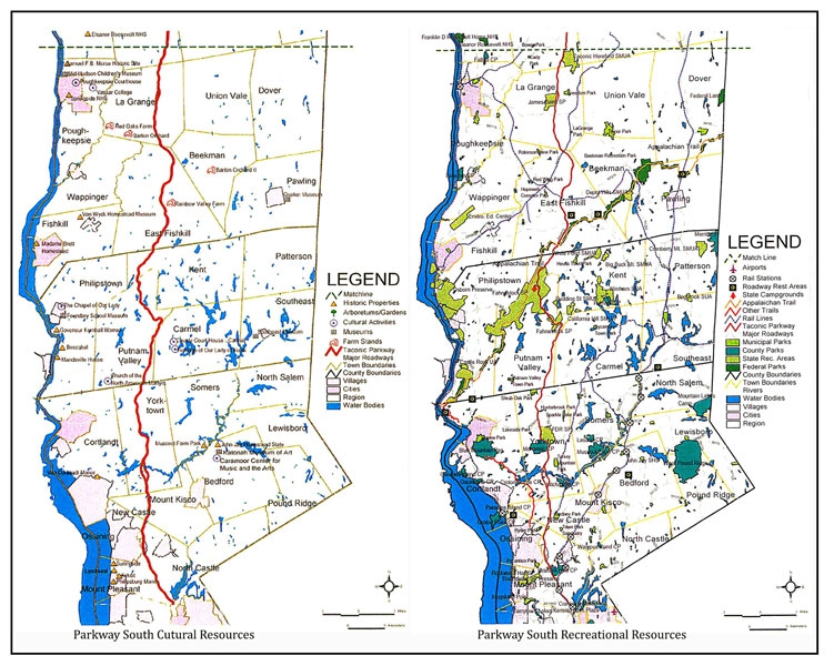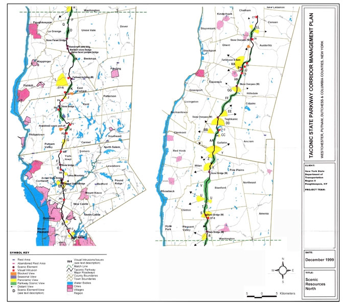 Detailed mapping captured geographic context; roadway features including overlooks, rock faces, and curving alignment; scenic, cultural and recreational resources; and vegetation types. This Taconic State Parkway Scenic Byway Corridor Management Plan set forth recommendations to strengthen the continuity of the cultural landscape character, enhance the visitor experience, support the stewardship of natural and cultural resources; and inform staff management of the corridor by NYS DOT.