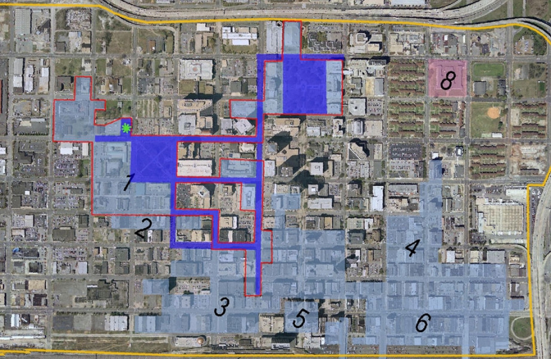 Birmingham City Center civil rights sites map with dark blue potential World Heritage places