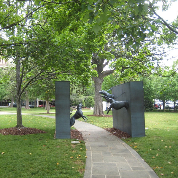 Evocative civil rights sculpture recalling police dogs and fire hose attack of teenagers