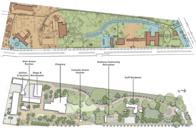 QUOTES:"Preservation of the legacy landscape formed a core part of the sustainable design goals… Views to the legacy landscape are celebrated across the campus, connecting embassy personnel and visitors to the surrounding environment." New U.S. Embassy Asunción Monograph, OBO US Department of State