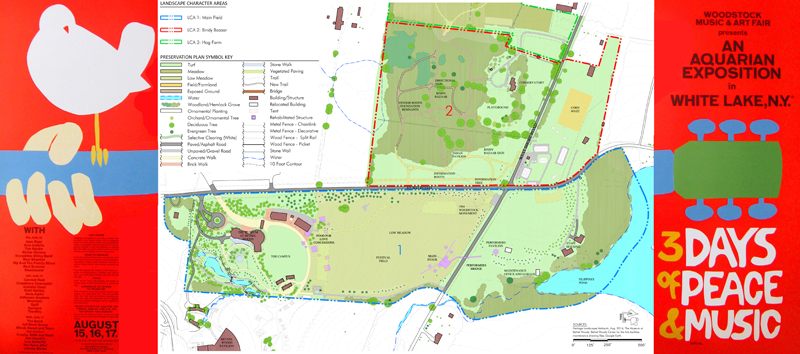 The 1969 Woodstock festival holds a special place in American history. The pivotal cultural and musical event enshrined the values of the counterculture and youth movement as a major force in the national social fabric as societal trends shifted toward global obligations of peace, environmental responsibility, and respect for all. In preparing a thorough cultural landscape report and carrying out specific implementation initiatives, Heritage Landscapes separated fact from fiction, detailing the event landscape. For the findings of this CLR, we aligned the historic investigation to resonant themes of the late 1960s.