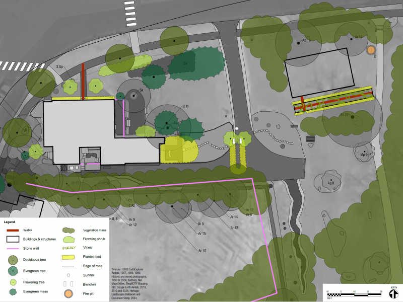 Heritage Landscapes, collaborating with Architectural Preservation Studio, prepared the Cultural Landscape Report (CLR) in a combined Historic Structure & Cultural Landscape Report (HSR/CLR) for the historic Hosmer House property in Sudbury, Massachusetts. Once home to Florence Hosmer, a significant female artist of the late 19th and early 20th centuries, the Hosmer House and its surrounding grounds reflect nearly two centuries of vernacular landscape evolution and design interventions.. Today, the 4.4-acre property encompasses both the Hosmer House grounds and adjacent Heritage Park, as a vital cultural asset for the Sudbury community. Our collaborative role in the HSR/CLR included: